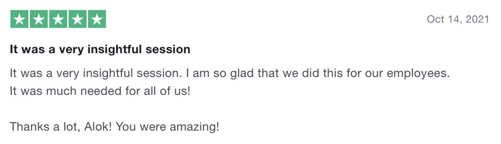 “Alok is one of the most effective behavioral trainers as his sessions are full of real-life examples and his easy to implement tips in day to day life ensures that learners get real life benefit.”